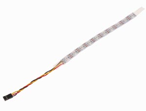 Rugalmas WS2812B 160 mm-es LED neopixel szalag 10 db egyedileg címezhető RGB LED-del. Működtetéséhez mikrokontroller szükséges. Minden LED egyedileg vezérelhető, így a fényeffektusok széles skálája érhető el (színes világítás, futófények, villogó fények és sok más). A rövidzárlat elleni védelmet az átlátszó burkolat biztosítja. Műszaki adatok: Üzemi feszültség: 3,3 - 5 V DC Áramfelvétel: max. 60 mA LED-enként Csatlakozó: 3 tűs anya csatlakozó 2,54 mm raszterrel Méretek: 260 x 10 x 3 mm (csatlakozókábellel együtt)