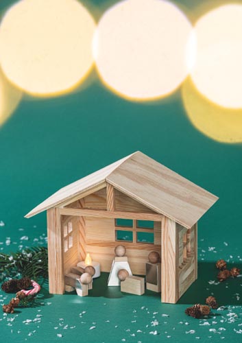 Alkosd meg saját betlehemedet! Az alapkeret masszív 10 x 10 mm-es fenyőlécekből készült, és könnyen összeszerelhető a mellékelt alaplapra. Elkészítéshez szükséges fűrészelés, fejleszti a finommotorikai készségeket, valamint a fa illesztések technikájának megértését. Méretek kb. 250 x 170 x 200 mm
