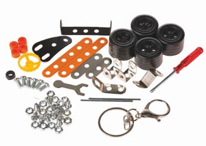 Fém építőkészlet kulcstartó - versenyautó