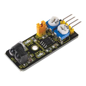 Infravörös távolságérzékelő állítható érzékelési távolsággal. 3 mm-es rögzítőfurattal rendelkezik a könnyű telepítés érdekében. Műszaki adatok: Üzemi feszültség: 3,3 - 5 V DC; Áramfelvétel: 20 mA; Üzemi hőmérséklet: -10 - +50 °C; Érzékelési távolság: 2 - 40 mm (állítható); Érzékelési szög: kb. 35°; Interfész: 4 tűs csatlakozó 2,54 mm raszterrel; Kimeneti jel: TTL HIGH / LOW; Méretek: 41 x 17 x 12 mm