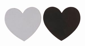 Kis karton szívek díszítéshez és festéshez. Az egyik oldal alapozott vászon felület a hátoldal mágneses borításban. Acélfelületekre és fehér táblákra tapad. Méretek: kb. 75 x 75 mm, 3 mm vastag, 12 darab.