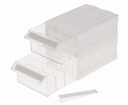 Fehér doboz, 2 kihúzható dobozzal és fogantyúval, 8 elválasztóval, 3 papírcímkecsíkkal és 3 védőcsíkkal, fehér doboz kb. 185 x 135 x 155 mm, kihúzható dobozok kb. 180 x 125 x 70 mm