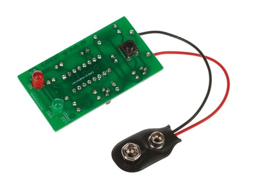 A véletlen generátor billentyűjének megnyomását egy rövid szünet követi, majd felvillana piros = NEM vagy zöld = IGEN LED izzó. 10 éves kortól ajánlott kezdők vagy haladók számára. A működéshez szükséges 9V elemet külön kell beszerezni. Leírás német nyelven.