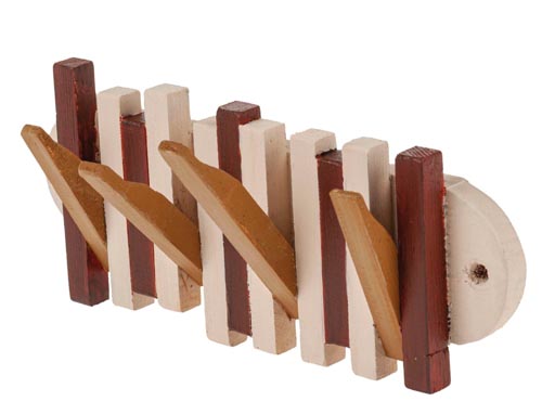 Falécekből, egyszerű lombfűrész munkával készülő fali kulcstartó tábla. Szükséges munkafolyamatok: fűrészelés, bejelölés, fúrás, csiszolás, festés és összeépítés. Leírás német nyelven.