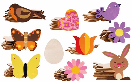 Tavaszi figurák, kb. 60 - 100 x 2, 5 mm, 100 db, natúr, 10 minta