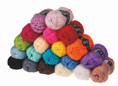 20 db 50 g-os gombolyag vegyes színekben, kb. 80 m hosszú, 100% poliakril, 30°C-on mosható, 3 rétegű, 4,5-5 mm-es horgoló- vagy kötőtűkhöz, összesen 1000 g, 20 db-os készlet