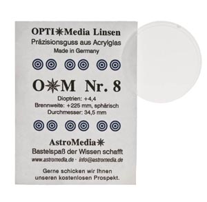Műanyag lencse 34, 5 mm, gyújtópont 225 mm