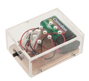 A legkisebb fénysugárra is reagál és sipol. Részletes leírás a sikeres összeépítéshez, . A csomag az elemet nem tartalmazza (9V). 80 x 60 x 33 mm