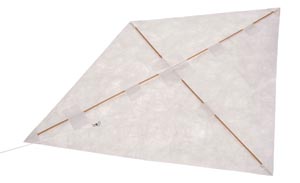 100 x 70 cm. Egyenletes szél mellett farokra nincs szüksége, anélkül is stabilan tud repülni. Kíváló repülési tulajdonságokkal rendelkezik. Könnyedén festhető. A csomag a sárkányeresztő zsinórt nem tartalmazza. Részletes leírás a sikeres összeépítéshez, .