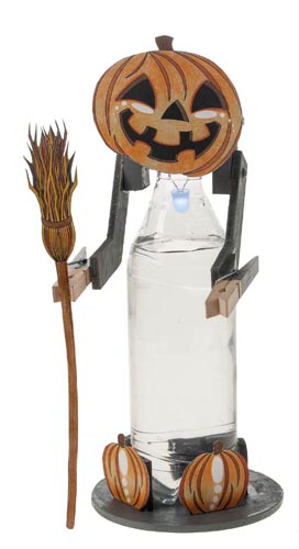 Egy recycelten PET- flakonból készítendő lámpa építő csomag. A figuraképek cserélésével az évszakoknak megfelelő hangulatot varázsol. Egyszerű áramkörrel működik, melyet lótozás nélkül el lehet készíteni. A szükséges 2 db 1,5 V (AA) mignon elemet külön kell megrendelni. Az elkészítéshez szükséges munkafolyamatok: jelölés, fűrészelés, csiszolás, ragasztás és összeillesztés. Pontos leírás . Az elkészült modell kb.120 x 120 x 275 mm