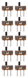 Miniatűr tolókapcsolók tűs érintkezőkkel 2,54 mm-es raszterben. Ideális próbapanelekhez és egyéb dugaszolható áramköri kártyákhoz. 10 darab. Műszaki adatok: Kapcsoló típusa: 1x SPDT (ON / ON) Érintkező terhelhetősége: 50 V DC / 0,5 A Méretek: 8,5 x 3,5 x 3,6 mm
