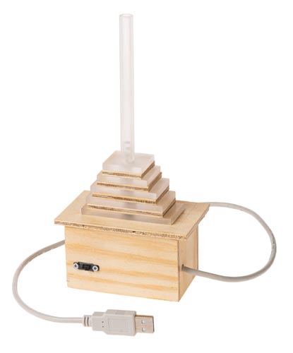 Egy kicsi, de elegáns éjszakai fény USB-porttal, városkép mintázattal. A beépített szivárvány LED az integrált elektronikával vezérli és keveri a három alapszínt különböző sebességgel, folyamatosan változó fényhatásokat hozva létre. Egy kék LED-del kombinálva (acryl lap és fa közé helyezve) városi hangulatot kölcsönöz a tárgynak a sötétben. Méretek: kb. 100 x 60 x 200 mm