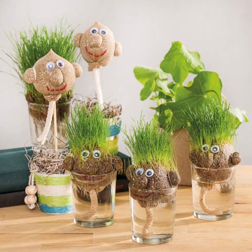 A kopasz fű fejet jól meg kell locsólni, majd egy vízzel töltött edénybe helyezni, úgy hogy a zsinór nedvességet tudjon felszívni. Egy két nap után megfigyelhető, hogy indul és növekszik a fejtetőn a fű.