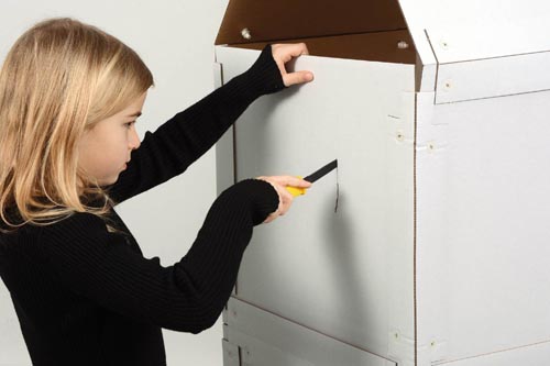 Az erős kartonlapok eleje dizájn céljából fehér, míg hátulja barna. A csatlakozófülek hosszában vannak vágva, hogy a sarkok körül könnyen és egyenesen lehessen hajtani. Az alkatrészeket kartoncsavarokkal rögzítik (nem tartozék). Tartalma: 25 db kartonlap kb. 450 x 450 x 3 mm, 25 db csatlakozó fül kb. 400 x 100 mm