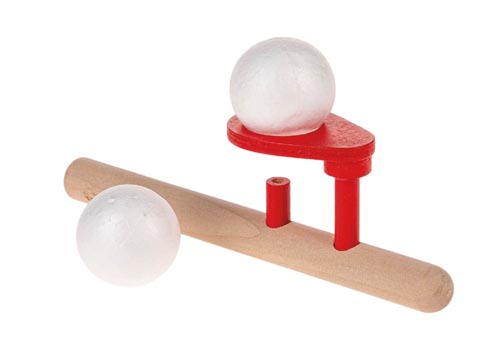 Mennyi lebeg a labda a levegőben, amikor a csőbe fújsz? Tartalma: 1 db fából készült puff játék kb 150 x 50 x 35 mm, 2 db ø 30 mm polisztirol golyó.