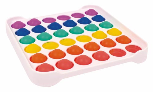 Egyszerre egy vagy több ujjal át lehet nyomni a buborékokat a korongon, így pukkanó zajjal mélyedés keletkezik. Ez azt okozza, hogy a buborékok ismét dudorként jelennek meg a lemez másik oldalán. A keret tömör műanyagból készült, ezért nem hajlítható.