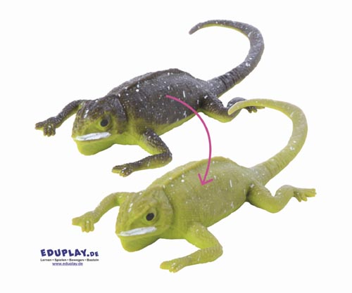 A kaméleonhoz hasonlóan ez a gyík a sötétből (hidegből) világosba (melegbe) változtatja a színét. A hatás azonnal látható, ha a gumijátékot különböző hőmérsékletű vízbe helyezed, vagy napfényre teszed. Puha műanyag, vegyes színű, méretek: 120 x 50 x 22 mm, 1 darab
