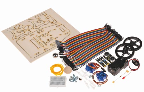 Ez az e-Motion 2. készlet tartalmazza az előre lézerrel vágott alaplapot és az önvezető jármű építéséhez szükséges összes alkatrészt – egyszerűen csomagold ki és kezdheted is! Tartalom: 1 lézerrel vágott rétegelt lemez alaplap, 2 db 360°-os szervomotor, 2 db kerék, 2 db vonalkövető érzékelő, 1 db ultrahangos érzékelő, 1 db mini próbapanel, 1 db mini tolókapcsoló, 1 db 18 mm-es acélgolyó, 1 db 25 mm-es fagolyó (az első kerékhez), 1 db 4 db AA elemtartó, 1 db elemcsipesz, összekötő vezetékek, 1 db LED, 1 db 1 kOhm ellenállás és rögzítőelemek A működéshez egy Calliope Mini v3 vezérlő és 4 db AA elem szükséges. Kérjük, külön rendelje meg. Az összeszerelt jármű méretei: kb. 180 x 120 x 80 mm, 1 készlet