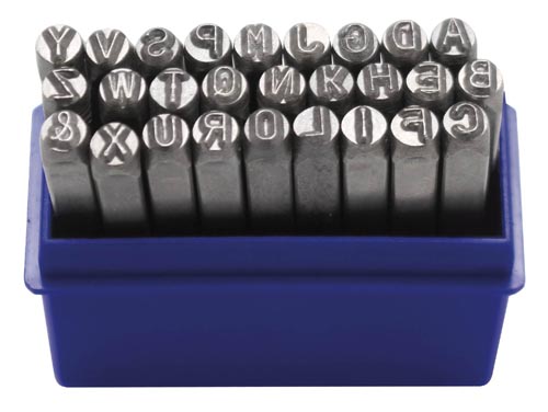Acél és vas felületekre alkalmas, a betük az írás karakter 1451 fokozatának felenek meg, sárgaréz alapanyagból, műanyag dobozban.