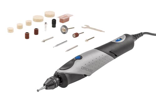 Gravírozó, polírozó és tisztító munkafolyamatokhoz használható. 9 W, feszültség 100 - 240 V, tömege kb. 0,11 kg, üres fordulatszám 5.000 - 22.000 1/min, fordulatszám beállítás lehetséges, hullámnyomás 70 dB (A), vibrálás 2,5 m/s˛, leírás német nyelven.