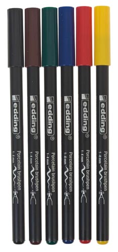 edding 4200 porcelánfestő ecsettoll, 6 db - alap színek