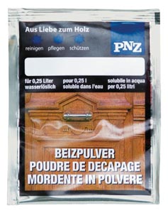 0,25 l vízhez elegndő (kb.2 m²), vízben oldódó, a színek egymással keverhetők, a víz mennyiségétőL függően különböző színárnyalatok keverhetők. Fafaragások, polcok, bútorok festésére alkalmas. Speciálisan a gabun, fenyő és erdeifenyő, de a többi honos faanyagokhoz is használható.