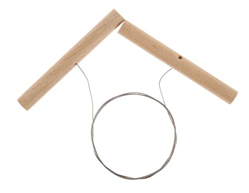 2 db fa fogantyú közé beszorított acélszál.