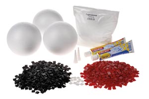Tartozékok: 3 db hungarocell gömb kb.ø 120 mm, 2 x 200 g piros üveg mozaiklap kb. 10 x 10 x 4 mm, 2 x 200 g fekete üveg mozaiklap kb. 10 x 10 x 4 mm, 12 db fehér üveg mozaiklap kb. 10 x 10 x 4 mm, 2 x 80 g átlátszó szilikon ragasztó, 1000 g fehér időjárás ellenálló mozaik fúgapor, leírás német nyelven.