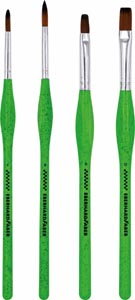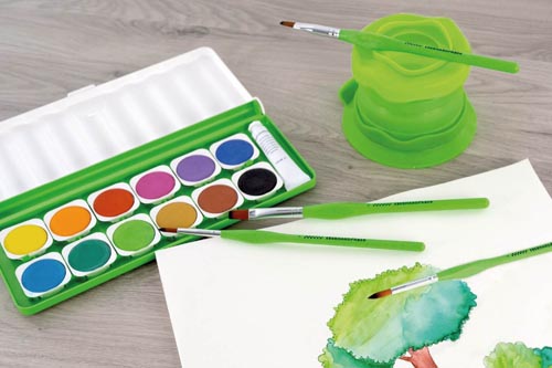 Szintetikus ecsetek ideális iskolában vagy hobbi alkalmakkor aquarell festéshez. ideálisak akvarellekkel való festéshez iskolai órákon és hobbik alkalmával. A nyél 60%-ban kukoricakeményítőből áll. Az ergonomikus háromszög alakú markolatnak köszönhetően az ecsetek nagyon jól illeszkednek a kézbe. A varrat nélküli alumínium foglalat. Tartalom: 2 db 4 mm és 6 mm-es lágyszőrű, valamint 2 db 8 mm és 12 mm-es lapos ecset.
