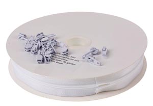 Cipzár készlet, kb 10 mx 25 mm, fehér + 20 db cipzárfej