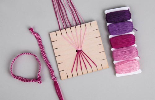 Lapos, szép, mintás zsinórok fonására alkalmas keret.